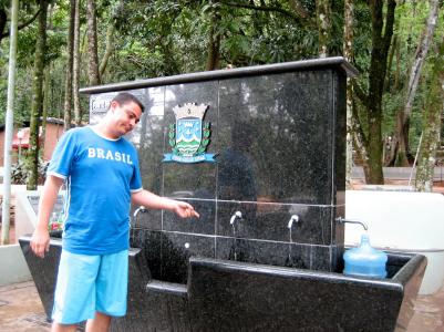 Aber dafür hatten wir mehr spass in der Stadt. Und gelaufen sind wir wirklich megaweit. Das ist im Übrigen das neue Hobby vom Rodrigo um ein paar Pfunde zu verlieren. Mit mir joggen zu gehen hatte er ja schnell wieder aufgegeben. Aber am Laufen kamen wir nicht vorbei, wiel der Busbahnhof von Poços genau wie hier ausserhalb der Stadt liegt. Und ein Highlight hatten wir noch im Ärmel als wir auf dem Rückweg in Aguas da Prata (Naherholungsgebiet 10km entfernt von hier) angehalten haben um kostenlos das Mineralwasser zu uns zu nehmen.