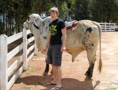 Zum Mittag waren wir auf einer Farm am Rande der Stadt. Dort gab es wieder lecker Fleisch. Den Bullen hinter mir (ich hoffe der Respekt und die Angst ist mir nicht anzusehen) hab ich ganz allein verzehrt. :)