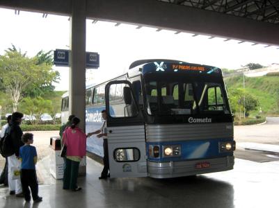Am Freitag, als ich mit Rodrigo den Bus nach Poços nahm, hatten wir ein wenig mehr Pech. Aber dafür war die Busfahrt ein wirklich tolles Erlebnis. Der Bus ist ja das Fernverkehrsmittel überhaupt in einem Land wo die Nord-Süd und Ost-West Ausdehnung ca. 4000km beträgt. Also kann so eine Fahrt schon mal drei Tage dauern. Unsere ging nur ca. eine Stunde und kostete für eine Richtung 8 Reais (also 3-4 Euros).