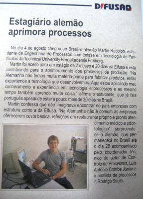 Hey fellows in the english and portuguese speaking world. Germany's got me back. I already started my new internship experience here in the beautiful university city of Heidelberg which is south of Frankfurt and north of Stuttgart. This is now an obligatory one contrary to my previous practical training at Elfusa in Brazil. I'll keep this Blog on-line and maybe a little updated as there's more to say about my stay here. I cannot repeat it more often that I had a wonderful time in Brazil and I really appreciate very much the kindness of the people. Thank you very much again, you know who you are. And please don't hesitate to write or call me. I don't wanna loose these new and great friendships.
